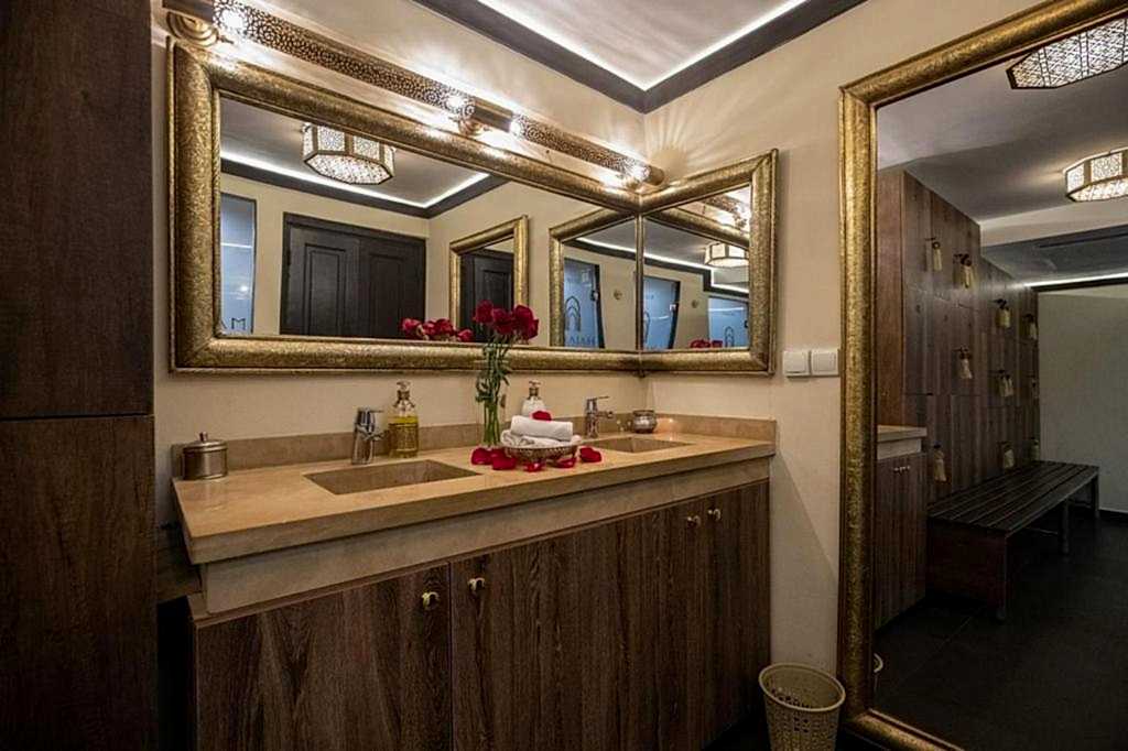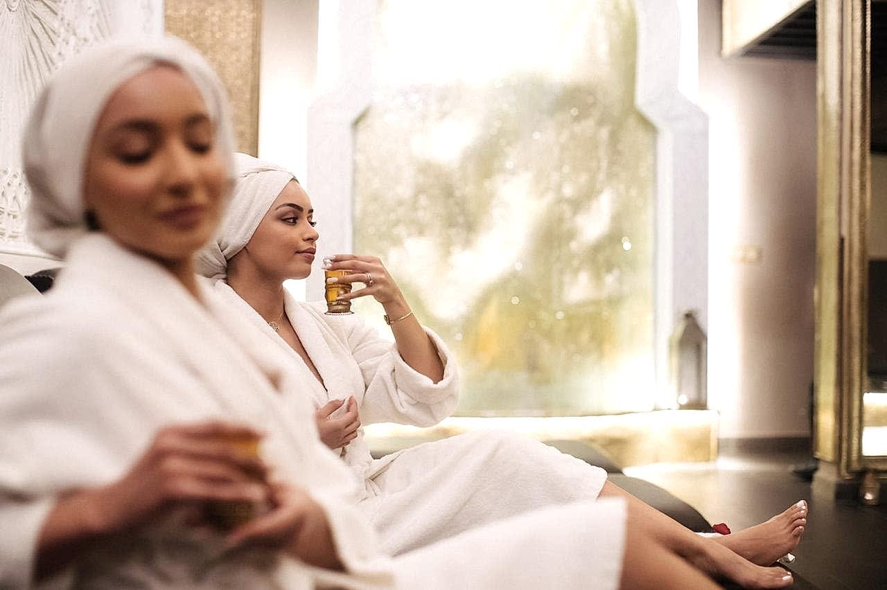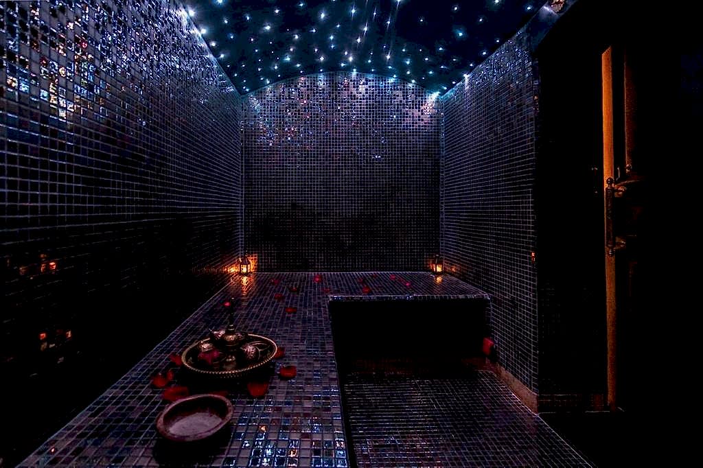 950 MADHammam, gommage au savon d’or beldi, ghassoul au lait de chamelle, hydratation à l’huile d’argan parfumée et 1h de massage aux pierres chaudes.
